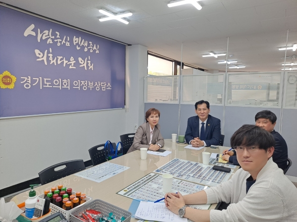 [금요저널] 경기도의회 문화체육관광위원회 이영봉 위원장은 지난 4일 도의회 의정부상담소에서 경기문화재단 문성진 경영본부장, 이종희 경영기획실장이 참석한 가운데 경기문화재단 제1회 추가 경정예산안에 대한 자체 사전보고회를 가졌다.