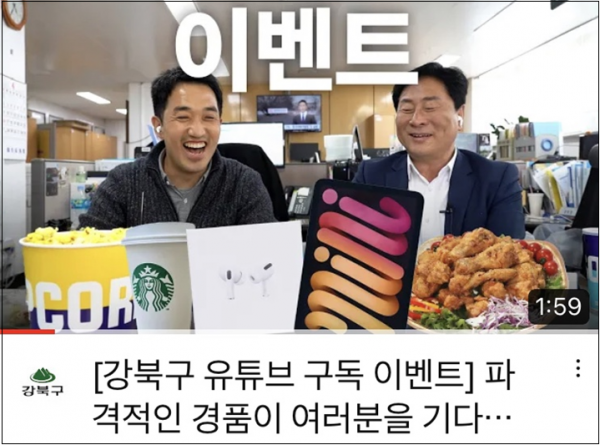 강북구 유튜브 구독 이벤트…‘상품 화끈’