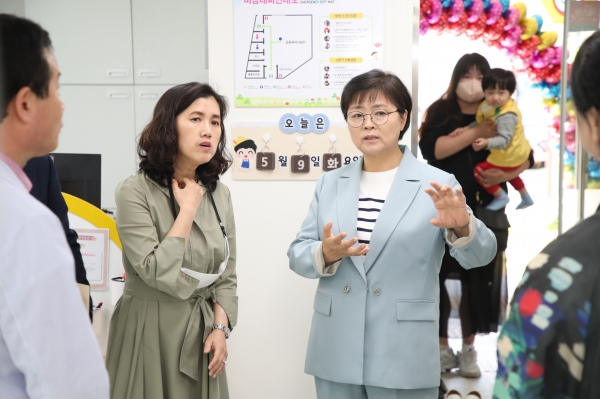 [금요저널] 이순희 서울 강북구청장이 지난 9일 강북구에서 세 번째로 문을 연 인수동 공동육아나눔터를 찾아 시설을 둘러보며 관계자들을 격려했다.