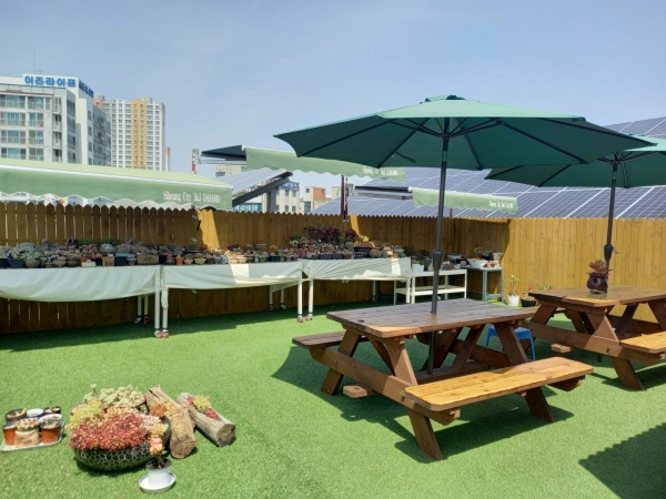 이번 녹색 공간조성으로 천편일률적인 콘크리트 옥상을 탈피하고 정돈되고 편안한 색감의 인조 잔디와 다육이식물이 조화롭게 어우러져 사업소 방문자들에게 다양한 볼거리가 가득한 휴게공간을 제공할 수 있게 됐다.