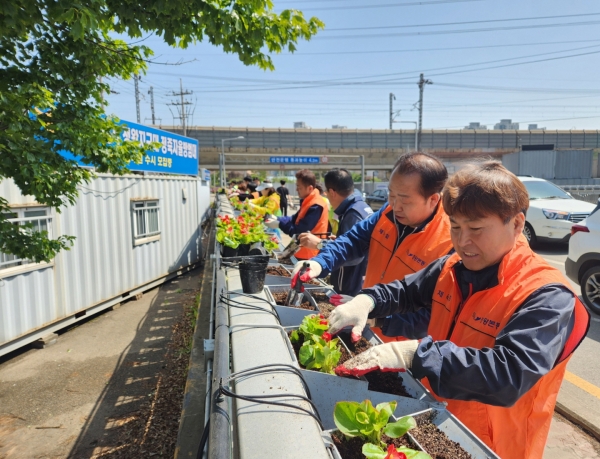 [금요저널] 정왕본동 행정복지센터는 지난 9일 통장협의회, 주민자치회, 자율방범대, 지역사회보장협의체 등 정왕본동 각 유관단체와 동 직원 등 약 80여명이 함께 참여하는 봄맞이 화초식재 행사를 진행했다.