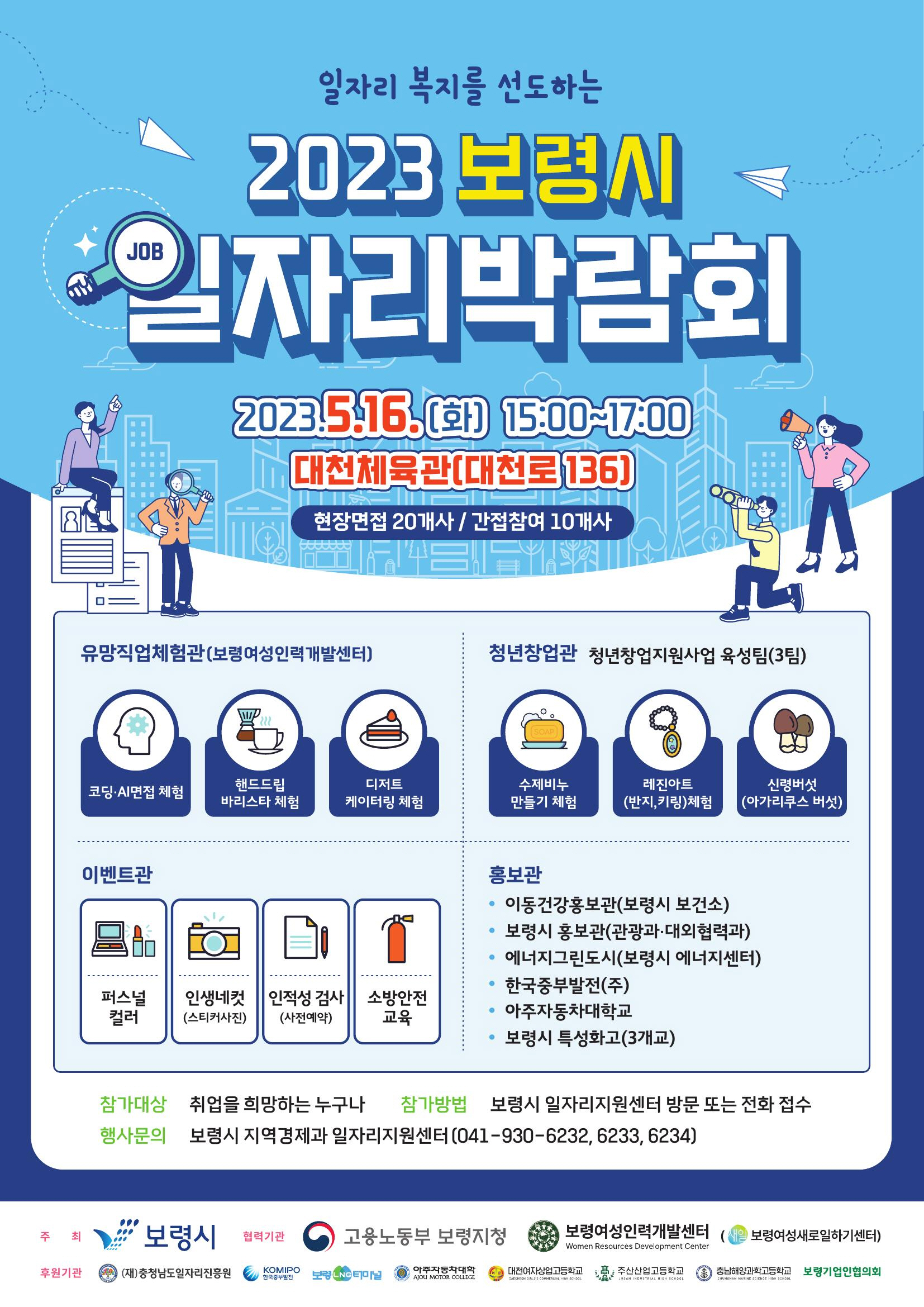 보령시는 오는 16일 대천체육관에서 구직자와 기업의 매칭을 통한 맞춤형 고용지원을 위해 일자리 박람회를 개최한다.