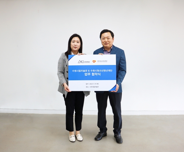 이날 수원시립미술관에서 열린 업무 협약식에는 남상은 수원시립미술관 학예전시과장과 수원시청소년재단 천천청소년문화의집 우혜윤 관장이 참석해 업무협약을 바탕으로 청소년 문화예술 활성화를 위해 힘을 모으기로 했다.