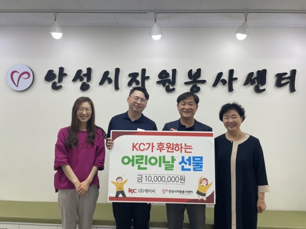 [금요저널] 안성시기업사회공헌단인 케이씨그룹이 지난 9일 어린이날을 맞이해 안성시 관내 어린이들을 위한 후원금 천만원을 안성시자원봉사센터에 기탁했다.