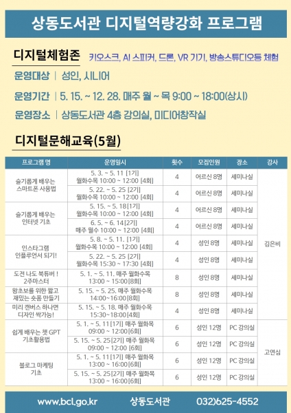 부천시 상동도서관, 시민 디지털 역량강화 프로그램 운영