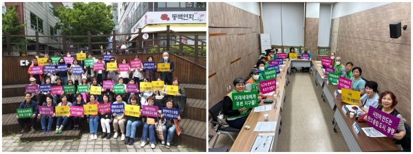 이날 참석자들은 탄소중립의 의미와 이를 실천하기 위한 생활 속의 작은 실천들에 관해 의견을 나누고 ‘일회용품 안 쓰기’, ‘대중교통 이용하기’, ‘안 쓰는 물건 기부하기’ 등을 적은 피켓을 들고 탄소중립 실천에 동참할 것을 다짐했다.