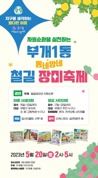 [금요저널] 부평구 부개1동 주민자치회가 오는 20일 부개1동 철로 변에서 2023년 자원순환을 실천하는 동네방네 철길 장미 축제를 진행한다.