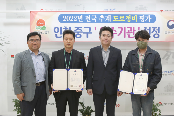 [금요저널] 인천시 중구는 국토교통부에서 주관하는‘2022년 추계 도로정비 평가’ 구 관리도로 분야에서 우수기관으로 선정되어 기관 표창을 받았다.