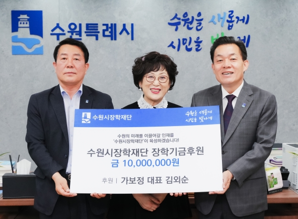 [금요저널] 김외순 가보정 대표가 “지역인재 양성에 사용해 달라”며 수원시장학재단에 1000만원을 기탁했다.