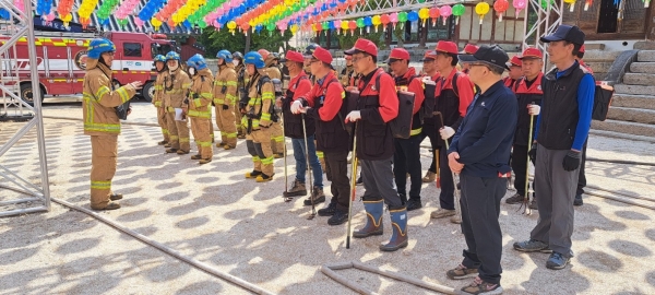 이번 훈련은 '석가탄신일' 대비 봉축행사로 인한 연등설치와 촛불이나 전기·가스 등의 화기 사용이 증가해 사찰 화재 위험 증가가 예상됨에 따라 사고예방과 신속한 초동대응태세 확립을 위해 마련됐다.