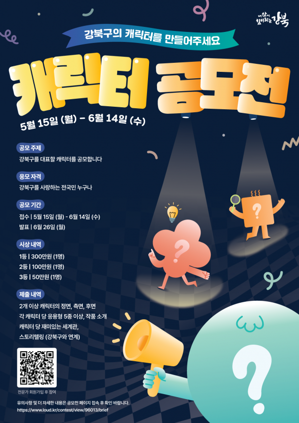 구 관계자는 “강북구 슬로건, CI, 상징물 등을 활용해도 되지만, 필수사항은 아니므로 디자인에 반드시 포함할 필요는 없다”며 “‘친근한’, ‘신뢰가는’, ‘활기찬’, ‘특색있는’을 키워드로 기존 공공기관 캐릭터 스타일에서 벗어난 트렌디한 캐릭터를 선발할 예정”이라고 밝혔다.