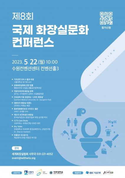 WTA는 5월 22일 오전 10시부터 수원컨벤션센터 컨벤션홀에서 제8회 국제화장실문화 콘퍼런스를 열고 23일 오후 3시에는 2층 회의실에서 제6차 총회를 개최한다.