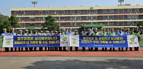 이날 캠페인은 가족을 위한 최고의 선물 안전운전 교통선진문화 정착으로 교통안전도시 남양주를 만듭시다 스쿨존 제한속도 30km, 안전한 등굣길 우리 함께 만들어요 등 보행자와 운전자 모두 주의를 기울일 수 있는 캠페인 문구를 선정해 진행했다.