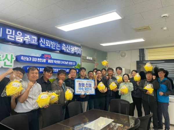 한편 윤종찬 축산정책과장은 “축산인과 공직자가 함께하는 동행 프로젝트 추진으로 몸에 배어있는 청렴·친절 서비스를 한번에 제공해 행정만족도를 높이고 보다 청렴하고 친절한 자세로 사람·가축·환경이 함께하는 지속가능한 상생 축산을 만들어가기 위해 최선을 다하겠다”고 전했다.