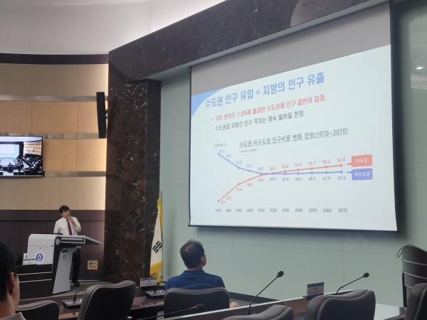 이날 강의에서 문진석 의원은 " 충청권 시군구의 63% 가 소멸위험지역을 분류되고 , 충남과 충북의 지역소득이 전국에서 가장 많이 유출될 만큼 충청권 지방소멸이 현실화되고 있어 대책 마련이 시급하다"고 했다.