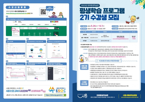 [금요저널] 시흥시는 오는 5월 24일부터 6월 7일까지 2023년 2기 대야·정왕평생학습관 평생학습 프로그램 수강생을 모집한다.