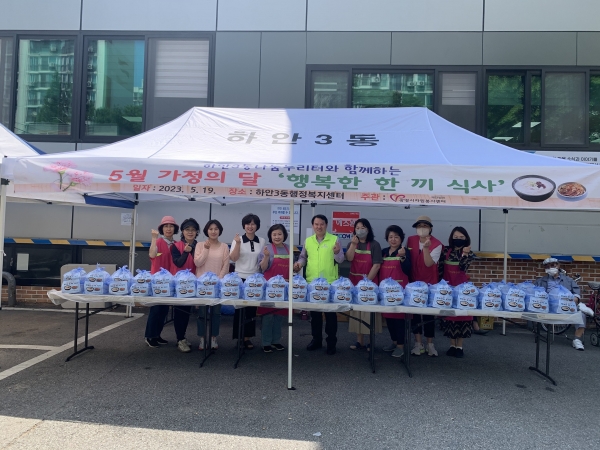 이번 행사를 주관한 이미경 하안3동 나눔누리터 단장은 “가정의 달을 맞아 가족이 다같이 모여 따뜻한 한 끼를 먹으며 몸과 마음이 따뜻해지는 가정의 달이 되길 바란다”고 밝혔다.