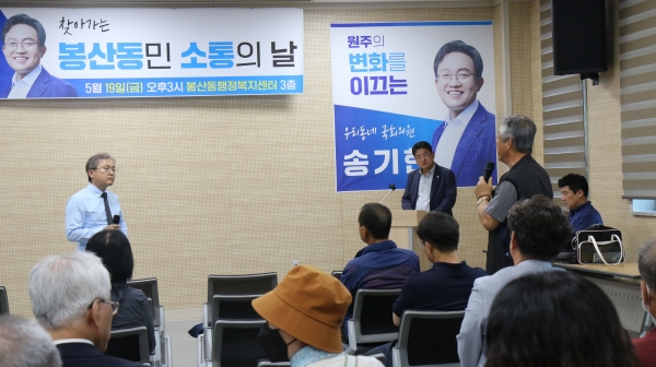 [금요저널] 더불어민주당 송기헌 국회의원이 19일 봉산동 행정복지센터에서 봉산동 주민을 대상으로 한 ‘주민소통의 날’ 행사를 마쳤다.