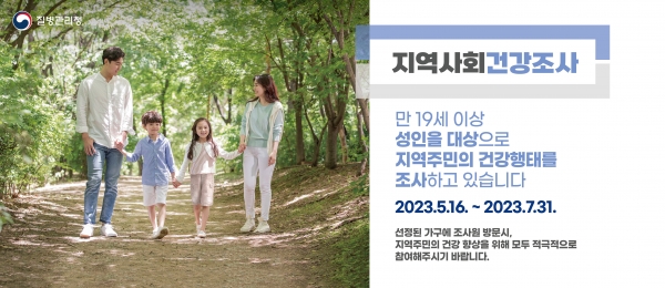 지역사회건강조사는 2008년부터 질병관리청과 17개 시·도, 258개 보건소가 함께 매년 지역주민의 건강수준과 건강행태 등을 파악하는 전국 동시 국가승인통계조사이다.