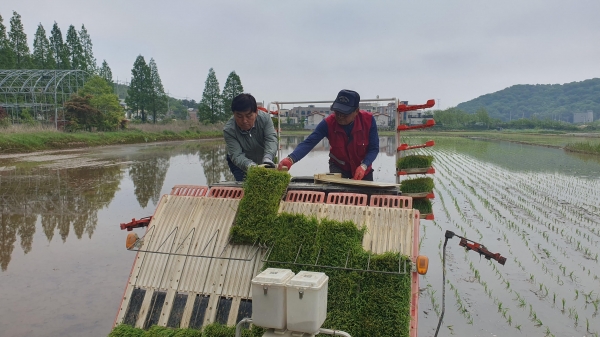 문경복 군수는 이앙기에 올라 직접 기계이앙을 시연함으로써 농업에 대한 열정과 관심을 표명해 농업인들로부터 환영을 받았고 벼농사의 애로사항을 공유하며 “고품질 쌀 생산을 위한 농업분야의 여러 지원사업을 총괄적으로 규모있게 추진하겠다”고 말했다.