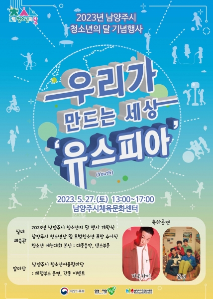 [금요저널]남양주시는 5월 청소년의 달을 맞아 오는 27일 남양주체육문화센터 실내체육관에서 ‘우리가 만드는 세상 유스피아’라는 슬로건으로 기념행사를 개최한다.