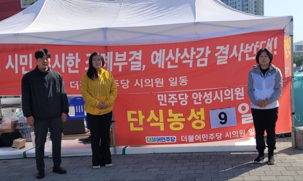 [금요저널] 안성시의회 민주당 3명 의원들의 단식이 9일차에 접어든 가운데, 23일 민주당 의원들이 국민의힘 당협위원장인 김학용 국회의원에게 면담을 요청하는 서한을 보냈다.