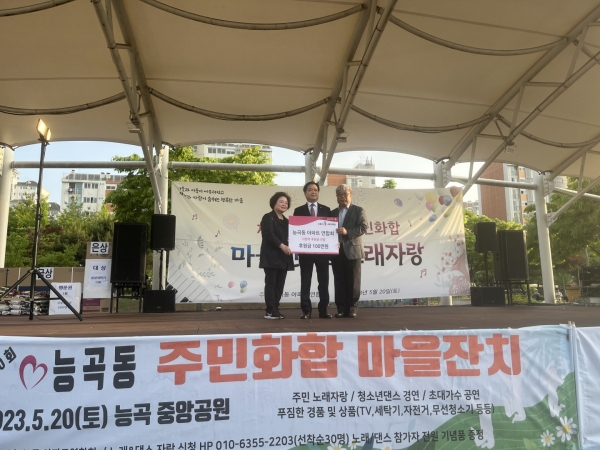 [금요저널] 능곡동 행정복지센터는 지난 20일 능곡동 중앙공원에서 열린 능곡동 아파트연합회 주관 마을잔치 행사에서 이웃사랑 실천을 위한 후원금 전달식을 열었다.