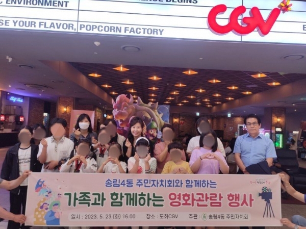 [금요저널] 인천 동구 송림4동 주민자치회는 저소득층 아동·청소년 가족을 대상으로 CGV 인천 도화점에서 영화관람 행사를 개최했다.