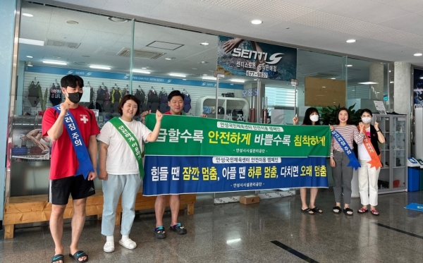 이번 캠페인은 정부의 코로나19 일상회복 선언 이후 안성시국민체육센터의 수영장 및 헬스장을 이용하는 시민이 급증하고 있지만 이에 반해 이용안전에 대한 인식이 부족해 사고를 유발하는 행위가 빈번히 발생하고 있어 이용객 안전의식 고취와 사고 예방을 위해 실시했다.
