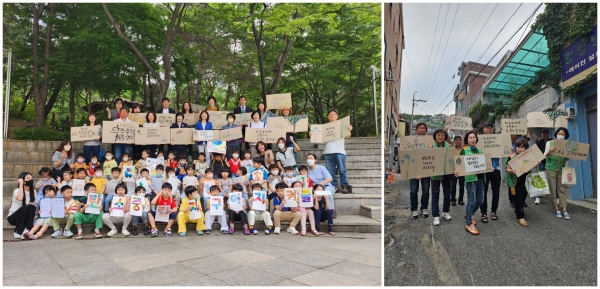 이날 예빛어린이집 어린이들이 모두 나와 탄소중립 선언을 함께 낭독하고 동네 한 바퀴 줍깅을 펼치며 미래세대와 현세대가 모두 동참해 탄소중립을 실천하자는 메시지를 전했다.