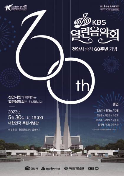 [금요저널] 천안시는 오는 30일 천안시 승격 60주년을 기념해 ‘KBS 열린음악회’를 독립기념관에서 개최한다.