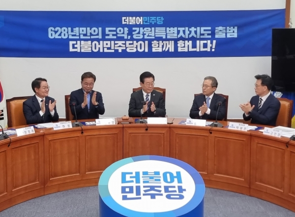 이어 “민주당이 싹을 틔운 강원특별자치시대 토대가 마련됐지만 끝이 아닌 시작이다”고 밝히며 “접경지역의 운명으로 특별한 희생을 치른 강원도가 특별한 보상은커녕 일방적인 희생을 강요받아온 만큼 곧 출범할 강원특별자치도를 전폭 지원하겠다”고 강조했다.