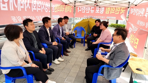 [금요저널] 안성시의회 민주당 의원들의 단식농성이 12일차에 접어든 가운데, 어제인 25일 국민의힘 시의원들이 농성장을 이틀째 방문했다.
