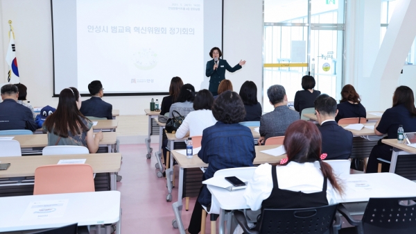 [금요저널] 안성시는 지난 24일 안성맞춤아트홀 4층 안성맞춤 문화살롱에서 2023년 안성시 범교육 혁신위원회 정기회의를 개최했다.
