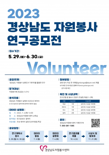 이번 연구공모전은 자원봉사 분야의 연구 활동을 장려하고 다채로운 자원봉사 데이터 분석으로 경상남도 자원봉사 활성화의 기반을 다지기 위해 마련됐다.