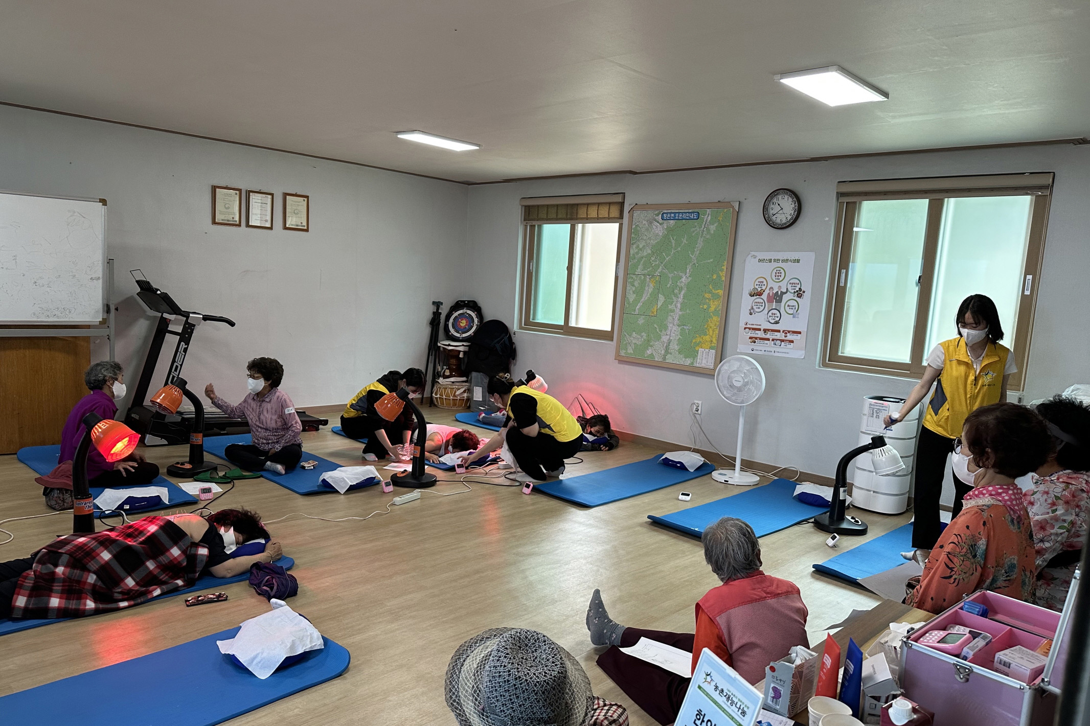 이날 봉사에서는 평은1리, 오운2리 주민뿐만 아니라 평은면민을 대상으로 혈당·혈압검사 후, 진료 상담을 통해 한의과, 주파수, 온열기 치료가 진행하고 생수와 생활약품 등을 제공했다.