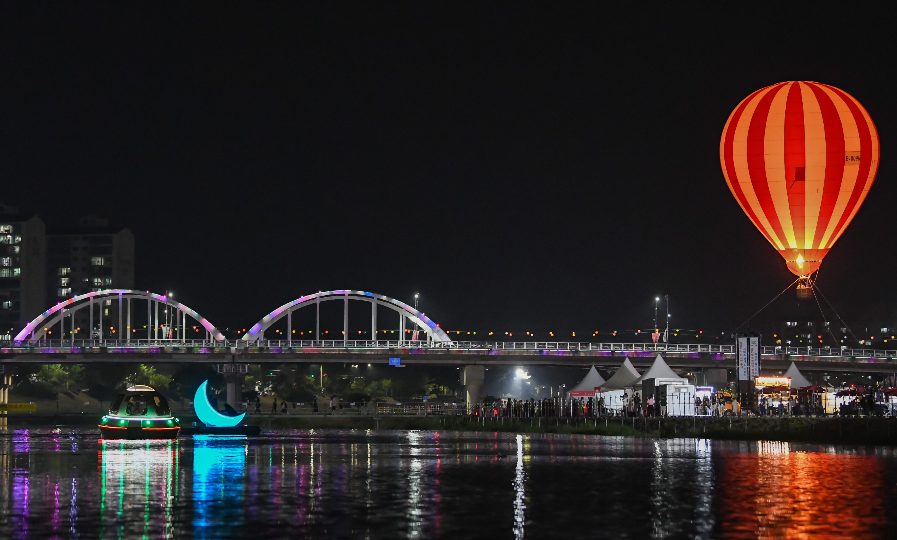 ‘별빛 낭만 열기구’는 5대의 열기구가 창공을 날며 체험객들에게 아름다운 서천을 조망하는 체험을 제공했고 서천에 뜬 초승달 모양의 ‘달빛 낭만 문보트’는 은은한 조명으로 수변을 밝히며 축제 분위기를 고조시켰다.
