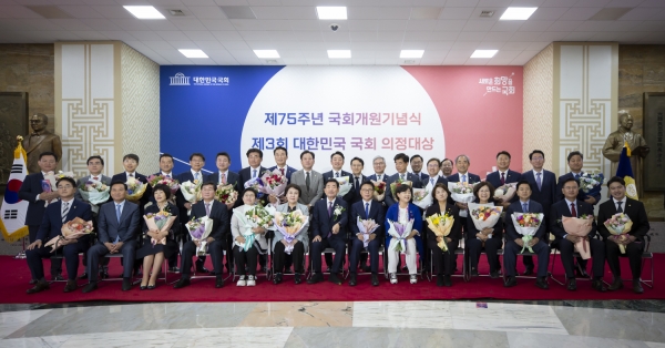 [금요저널] 더불어민주당 서삼석 의원 이 31 일 국회의사당 중앙홀에서 개최된 제 75 주년 국회 개원 기념식에서 제 3 회 ‘ 대한민국 국회 의정대상 ’ 을 수상했다.