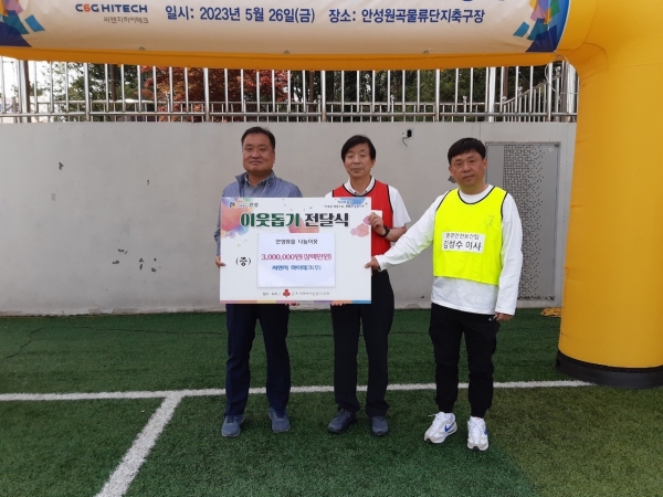 [금요저널] 안성시 원곡면에 소재한 ‘씨앤지하이테크’에서는 26일 오전 관내 저소득층 가구 지원에 사용해달라며 성금 삼백만원을 원곡면 지역사회보장협의체에 기탁했다.