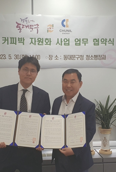 [금요저널] 동대문구는 지난 30일 주식회사 천일에너지와 커피박의 자원화를 위한 민⋅관 업무협약을 체결했다.