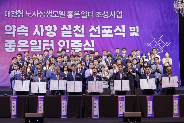이장우 대전시장은 “좋은 일터 조성사업은 기업의 자발적인 참여로 근로환경 개선 등을 유도함으로써 기업 경쟁력을 강화하고 지역 일자리의 질을 높이면서 일자리를 늘리는 성과를 이뤄냈다”며 “앞으로도 많은 기업들이 노사가 협력하면서 상생을 이뤄가는 기업문화를 조성할 수 있도록 지원을 강화해 지역 내 양질의 일자리 창출을 확산해 나갈 계획”이라고 말했다.