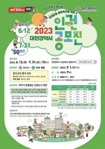 [금요저널] 대전시는 인권존중 의식 향상과 인권문화 확산을 위해 전국 규모의 ‘2023년 대전광역시 인권공모전’을 개최한다.