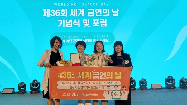 [금요저널] 안성시보건소는 지난 5월 31일 ‘세계 금연의 날’을 맞이해 실시한‘제36회 세계 금연의 날 기념식’에서 2022년 지역사회 금연환경조성에 기여한 공로를 인정받아 최우수 기관으로 보건복지부 표창을 수상했다.