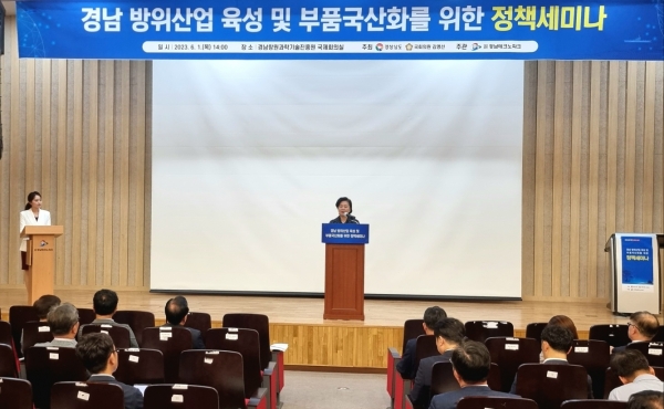 [금요저널] 김영선 국회의원이 1일 세계 4대 수출강국으로 도약하는 대한민국 방위산업의 경쟁력 확보 방안을 논의하고 경남을 K-방산 중심지로 육성하는 전략을 모색하기 위해 ‘경남 방위산업 육성 및 부품 국산화를 위한 정책 세미나’를 주최했다.