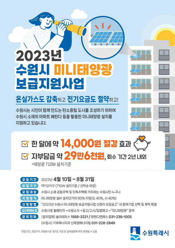 수원시,‘2023년 미니태양광 보급지원사업’참여자 모집