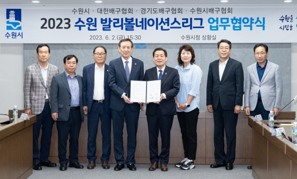 협약식에는 이재준 수원특례시장, 오한남 대한배구협회장, 박용규 경기도배구협회장, 이정아 수원시배구협회 전무 등이 참석했다.