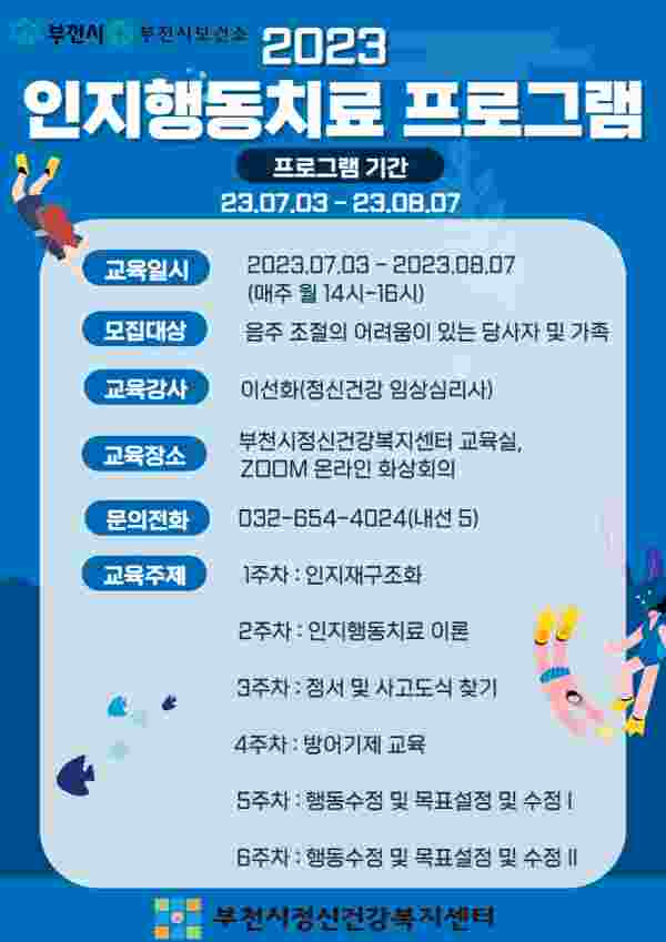 부천시, 2023년 알코올 교육 ‘인지행동치료’ 운영