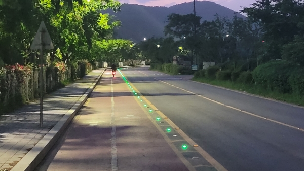 수원 광교산로 자전거전용차로에 태양광 도로표지병 설치