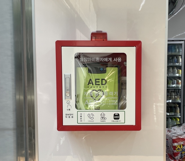 이는 급성심정지자 목격 시 골든타임에 자동심장충격기를 빠르게 적용하기 위한 취지로 CU편의점 출입구에는 ‘자동심장충격기 설치시설’ 안내 표지가 부착돼 있다.