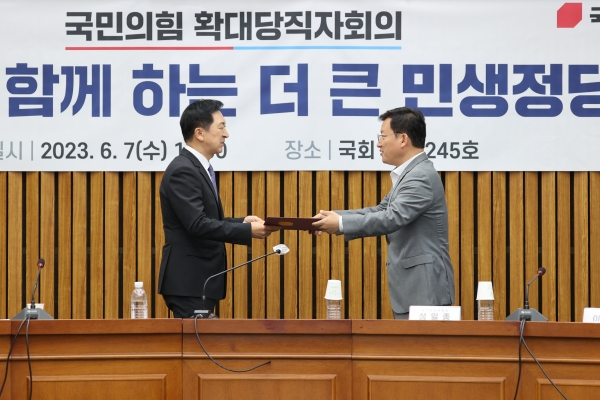 국민의힘은 최고위원회 회의 에서 주요 당직자 구성을 의결하고 , 6 일 확대당직자회의에서 임명식 수여식을 통해 김 의원을 노동위원장으로 정식 임명했다.